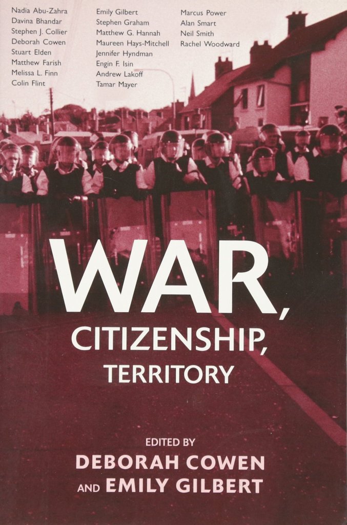 Deborah Cowen and Emily Gilbert (2008) “Introduction: The Politics of War, Citizenship, Territory” in Deborah Cowen and Emily Gilbert, ed. War, Citizenship, Territory. New York: Routledge.