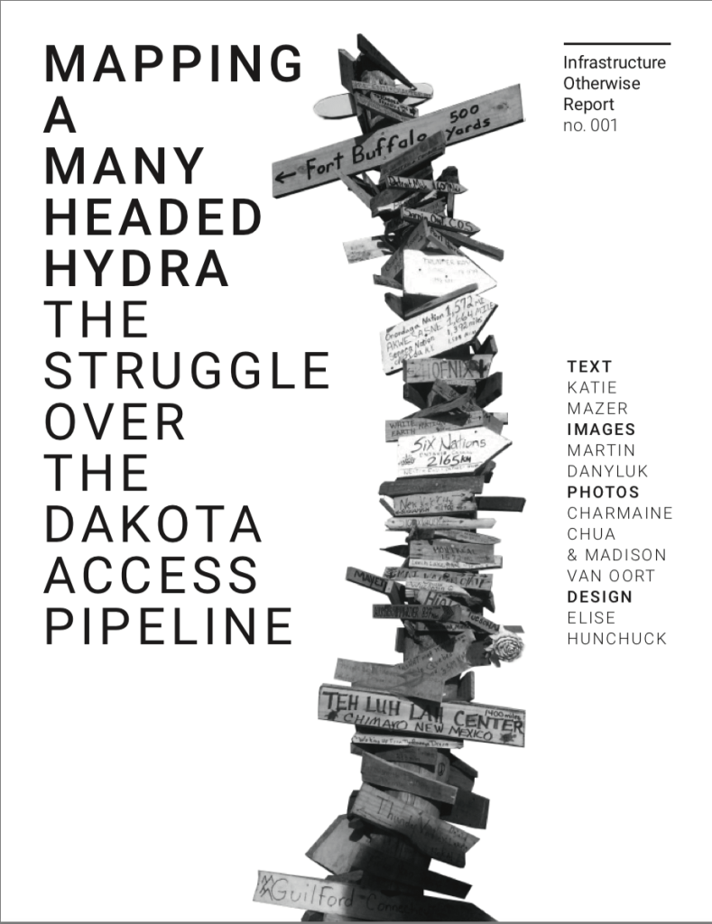 Mazer, K., Danyluk, M., Hunchuck, E., Chua, C. & Cowen, D. (2017) Mapping a Many Headed Hydra: The Struggle Over the Dakota Access Pipeline. Infrastructure Otherwise. Report 001. 18,389 words.